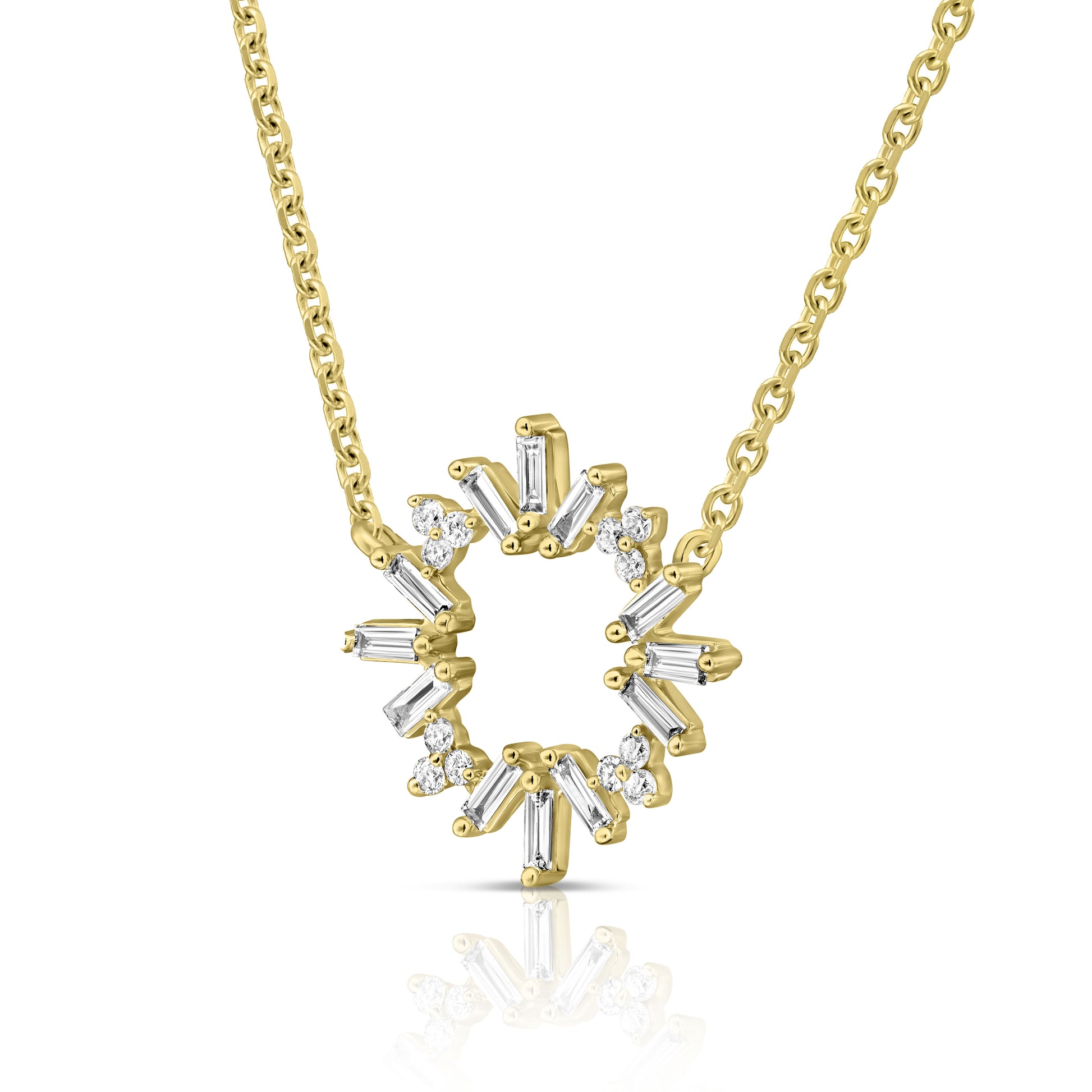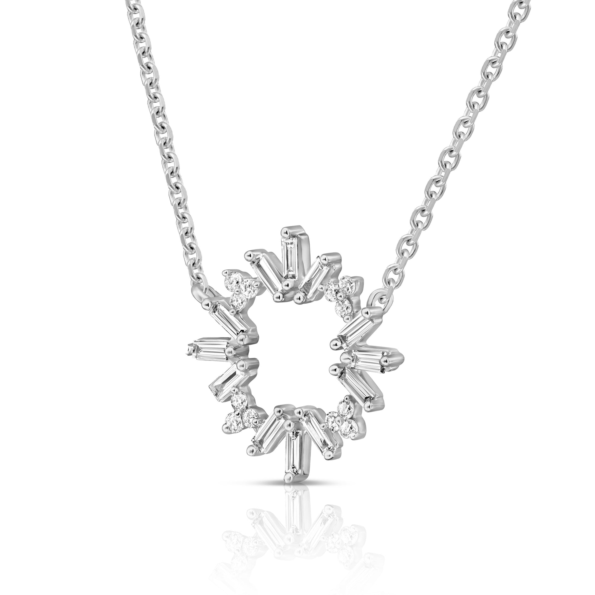 תליון עדין ומיוחד בעיצוב כוכב פתוח, משובץ ביהלומים בחיתוכים שונים - עגולים ומלבניים, היוצרים יחד צורת כוכב נוצצת וייחודית.