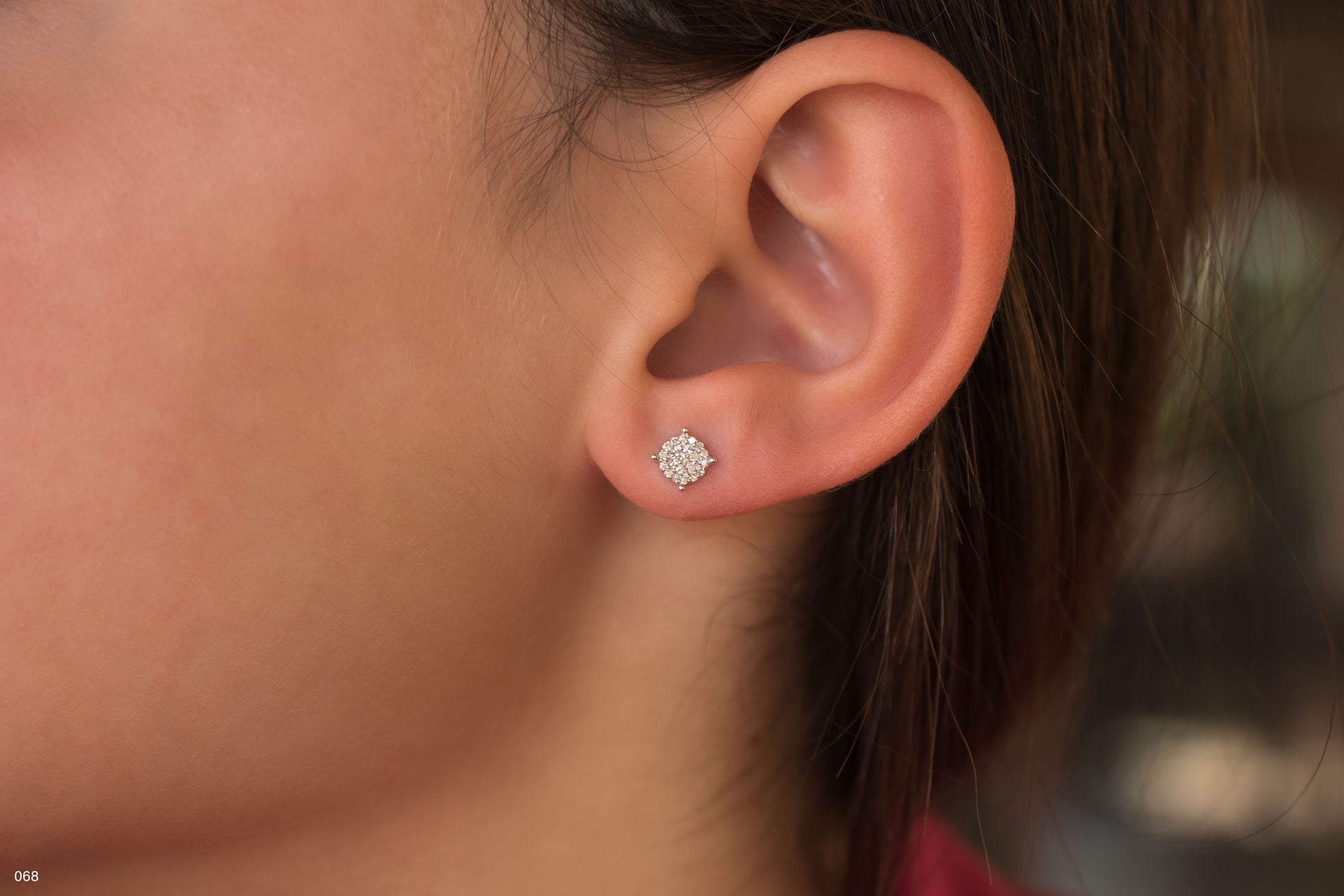 עגילים מרהיבים משובצים ב-42 יהלומים איכותיים במשקל כולל של 0.14 קראט.