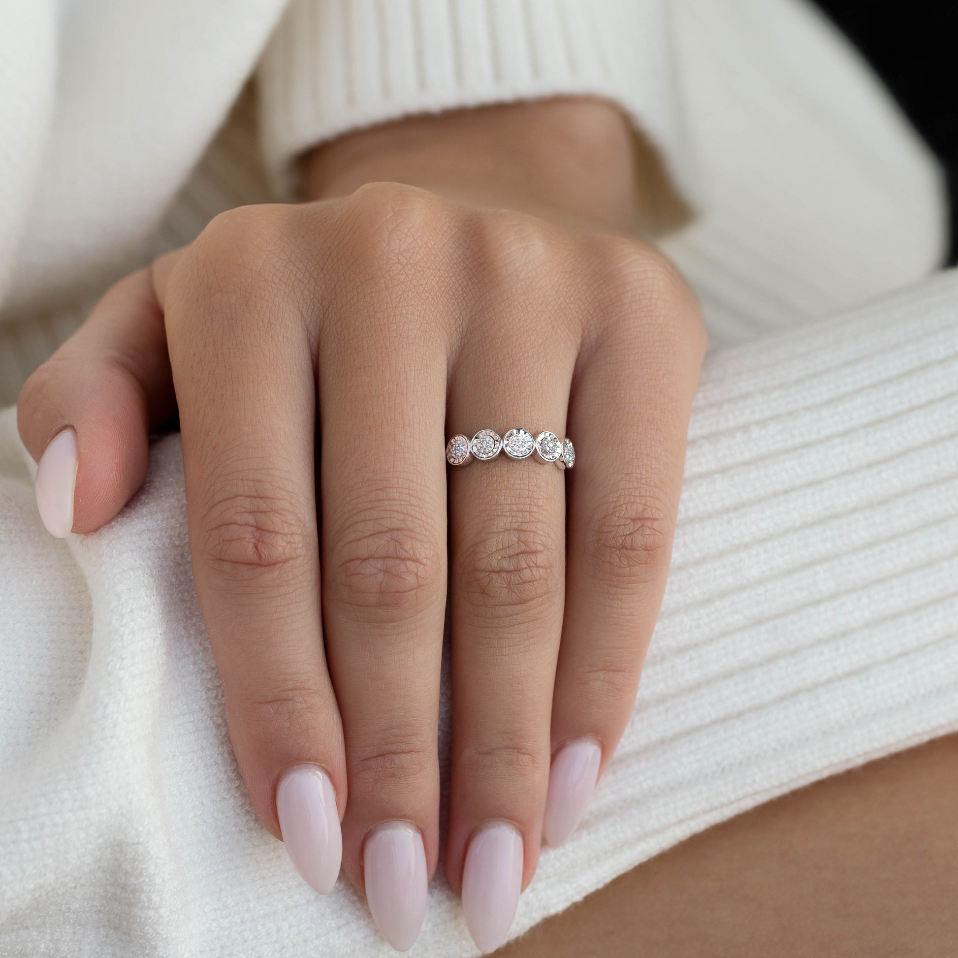טבעת יהלום עדינה עם שיבוץ 35 יהלומים נוצצים במשקל כולל של 0.11 קראט בשורה אחת. עיצוב מינימליסטי ואלגנטי שמתאים לכל יום ולכל אירוע.