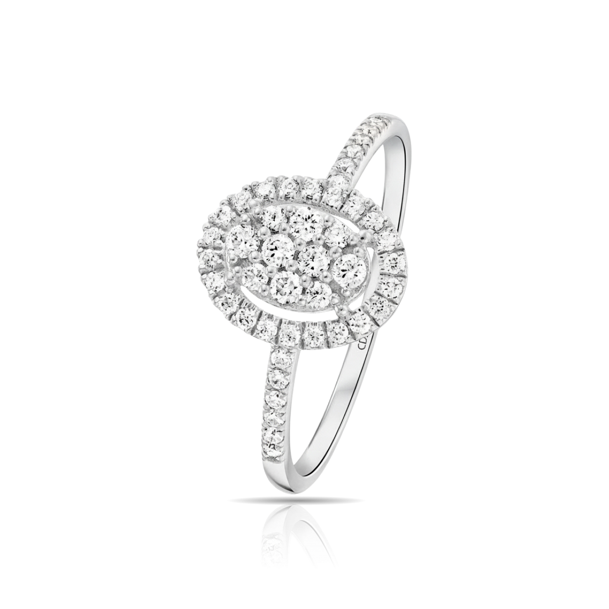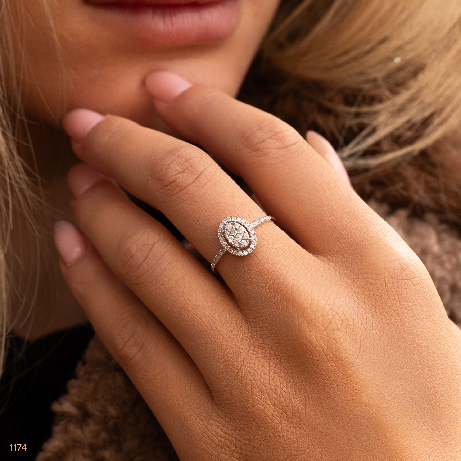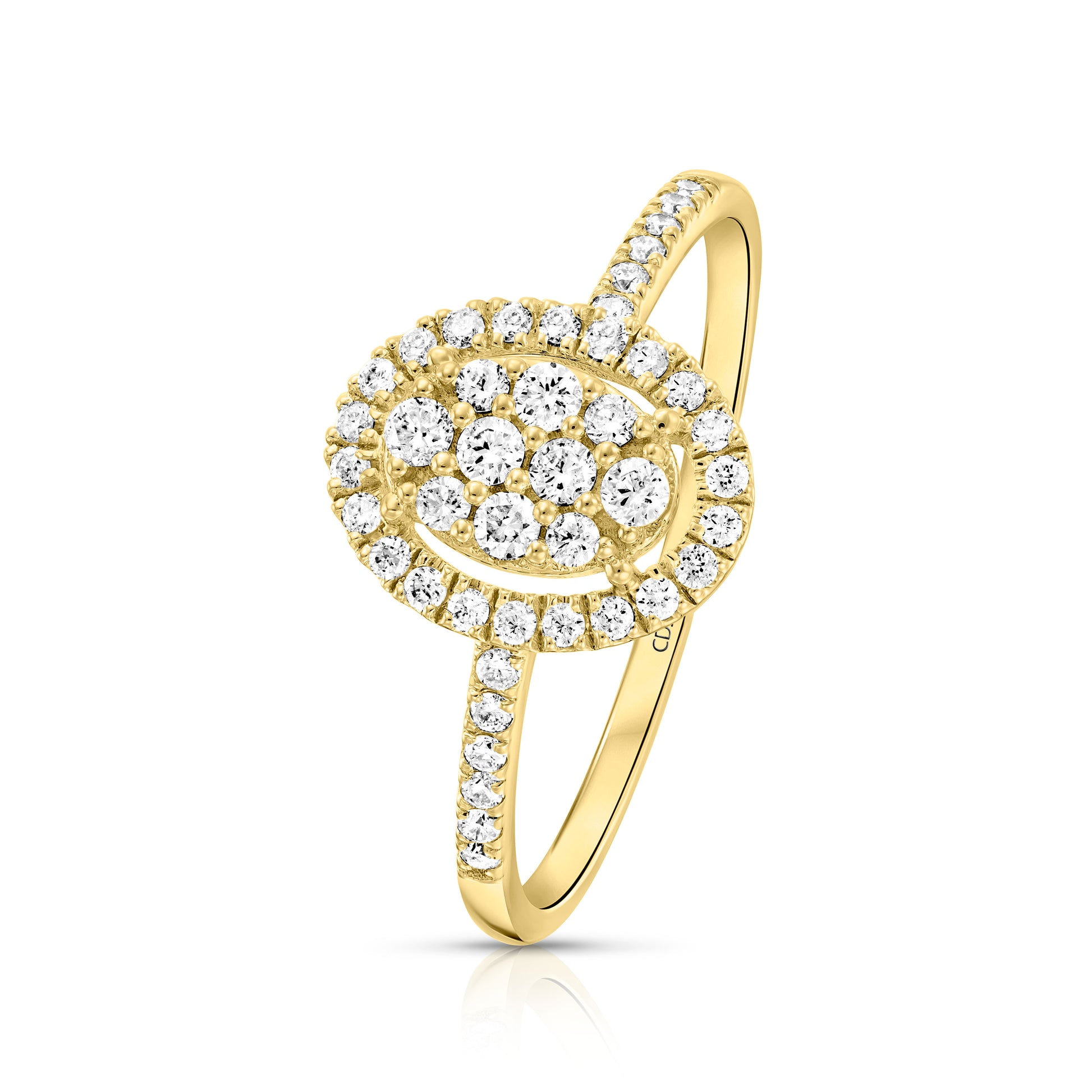 טבעת יהלומים מרהיבה בעיצוב מעוגל אלגנטי, המשלבת זוהר יוצא דופן עם אלמנטים של מלוכה.
